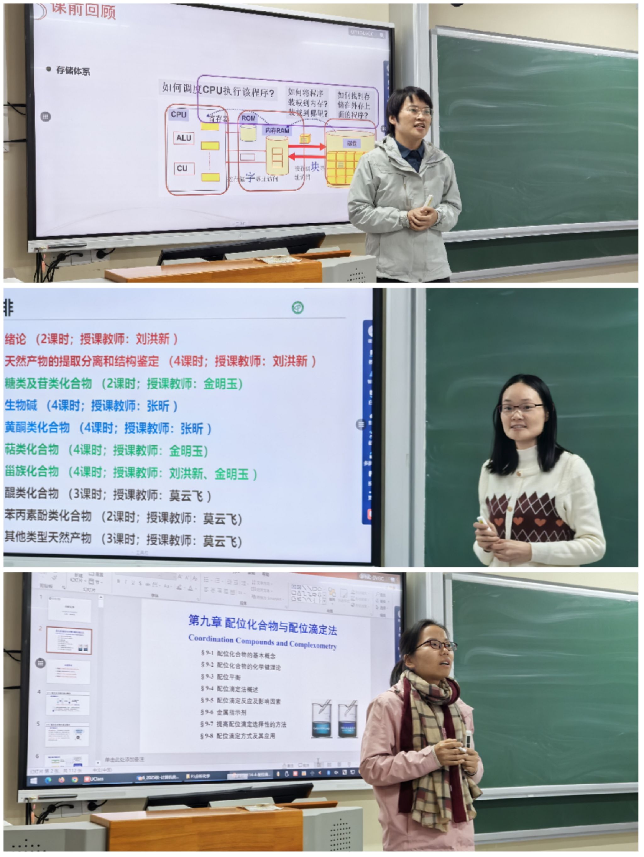 试讲过程中,3位老师结合所授课程特点,展现了各具特色的教学风格。沈晓燕围绕《计算机类专业导论》课程,系统梳理专业发展脉络、核心知识体系与就业方向,帮助学生建立专业认知框架;刘洪新主讲《天然产物化学》,结合生动的实际案例讲解天然产物特性,注重理论与生活实践的结合;余祥英聚焦《分析化学》课程中配位化合物等内容,通过清晰的原理阐释、直观的结构演示,拆解核心知识点,让抽象的化学概念通俗易懂。